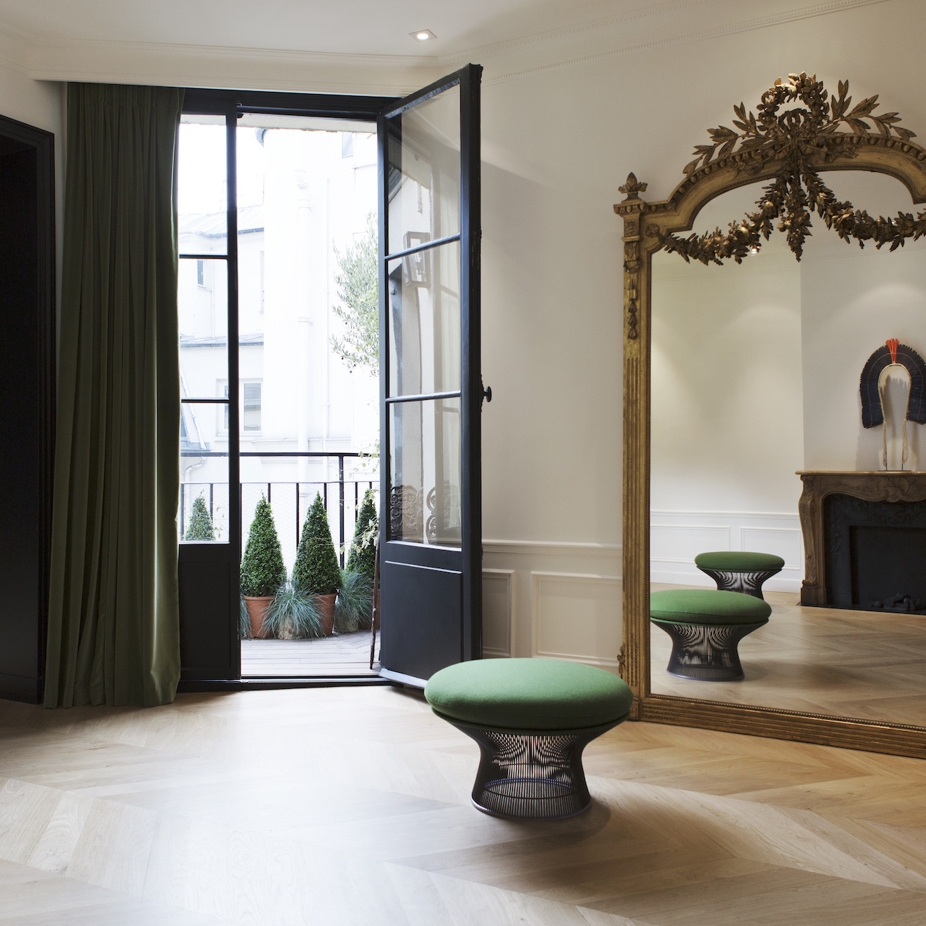 Depuis 2009, le salon évolue avec grâce, jouant avec les codes Haussmanniens, la luminosité et les belles matières, et respectant les désirs et envies du coiffeur parisien et de son architecte d’intérieur Santillane Design.